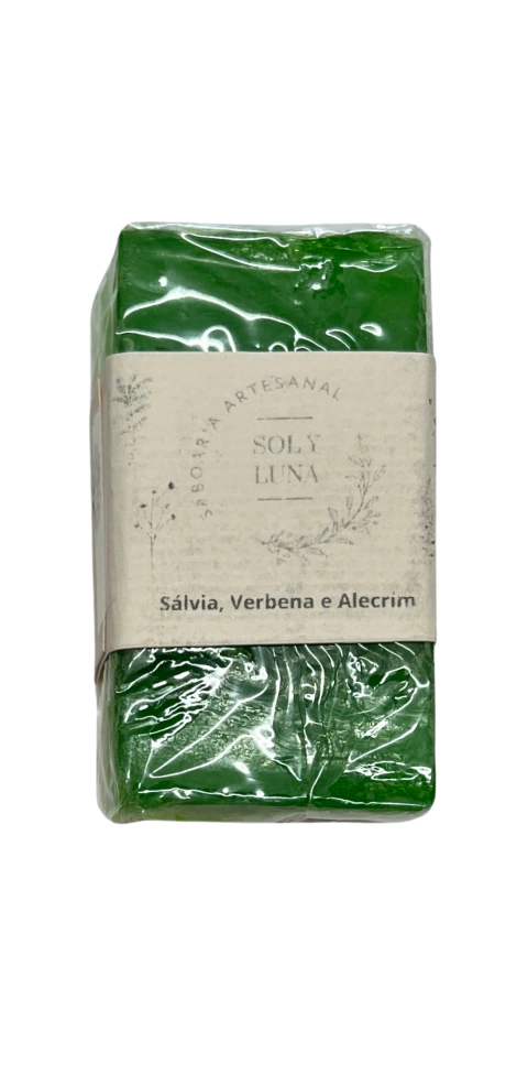 Banhar com sabonete artesanal é uma experiência sensorial que combina os benefícios calmantes do extrato de sálvia com a refrescância da essência de verbena, além do toque revigorante do óleo essencial de alecrim.